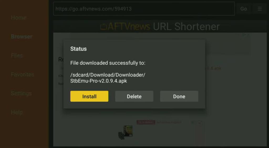 - You will then be prompted to delete the installation file. Click Delete to remove this unnecessary file and free up space on your device. This is important as Fire Sticks have limited storage.